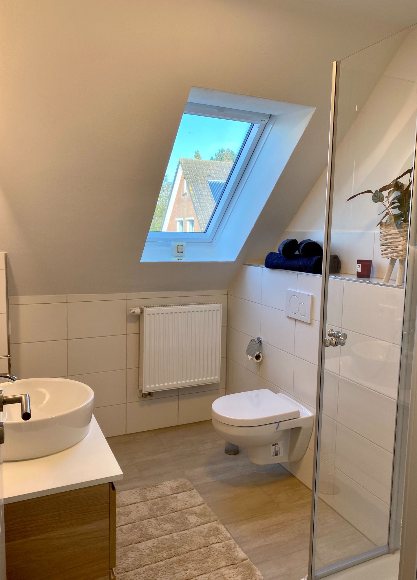 Bei unserer Inselwohnung handelt es sich um eine Einliegerwohnung für 2 Personen im Dachgeschoss. Bestehend aus Wohnzimmer, Schlafzimmer, Küche, Duschbad und Balkon. Die Einbauküche ist u.a. mit einem Geschirrspüler, sowie einem Herd mit Ceranfeld und Backofen ausgestattet.